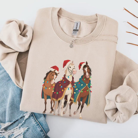 This christmas horse sweatshirt from XXS Monster combines festive cheer with cozy comfort, making it the perfect holiday animal shirt for anyone who loves unique and funny Christmas tees. Crafted from soft cotton sweatshirt fabric, this unisex holiday shirt offers a relaxed fit sweatshirt style that suits both men and women. Whether you're searching for a cute Christmas gift or want to add vintage style sweatshirt vibes to your festive wardrobe, this circus horse sweater delivers warmth and charm throughout the season.