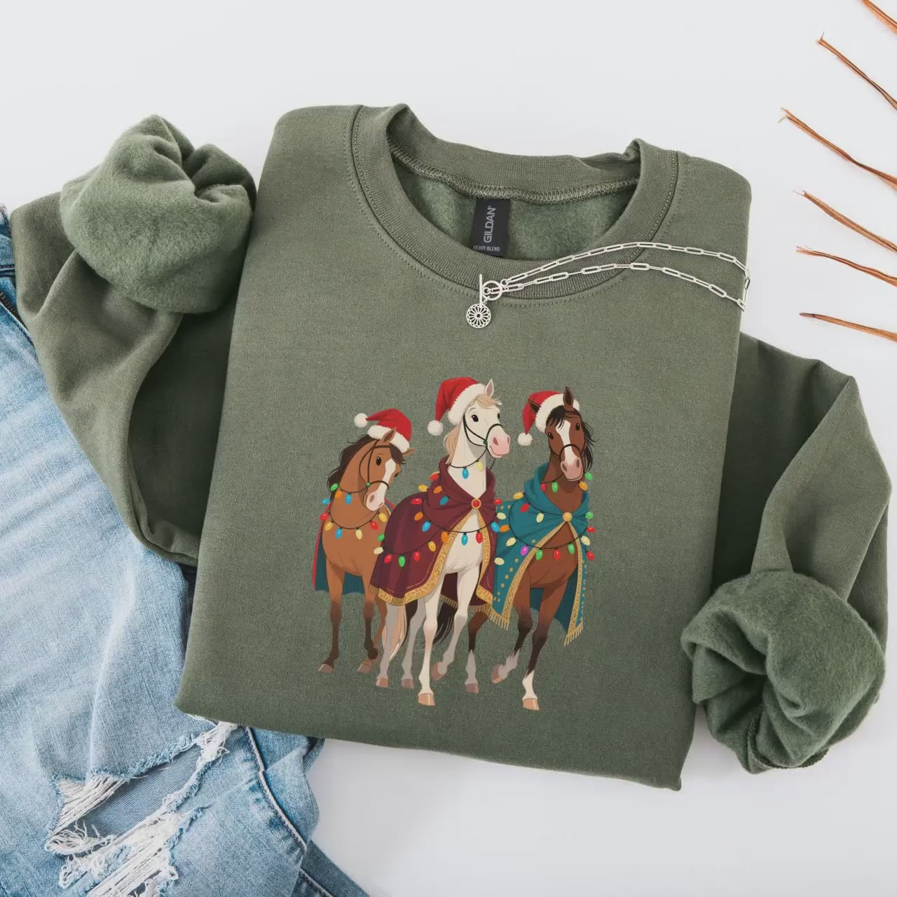 Made from premium cotton-polyester blend, this sweatshirt offers a relaxed unisex fit that suits all body types. The fabric’s breathability and durability ensure it stands up to everyday wear and multiple washes without fading or shrinking. Our carefully crafted print uses high-quality inks that resist cracking and peeling, so your holiday horse present looks great year after year.